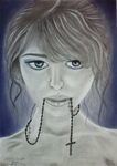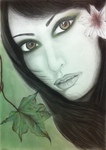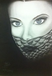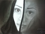 2013Helder zien. Grafiet potlood, conté krijt, kool krijt, derwent kleurpotloden. Naar een foto van iemand op Deviant Art. Toestemming gevraagd en gekregen.